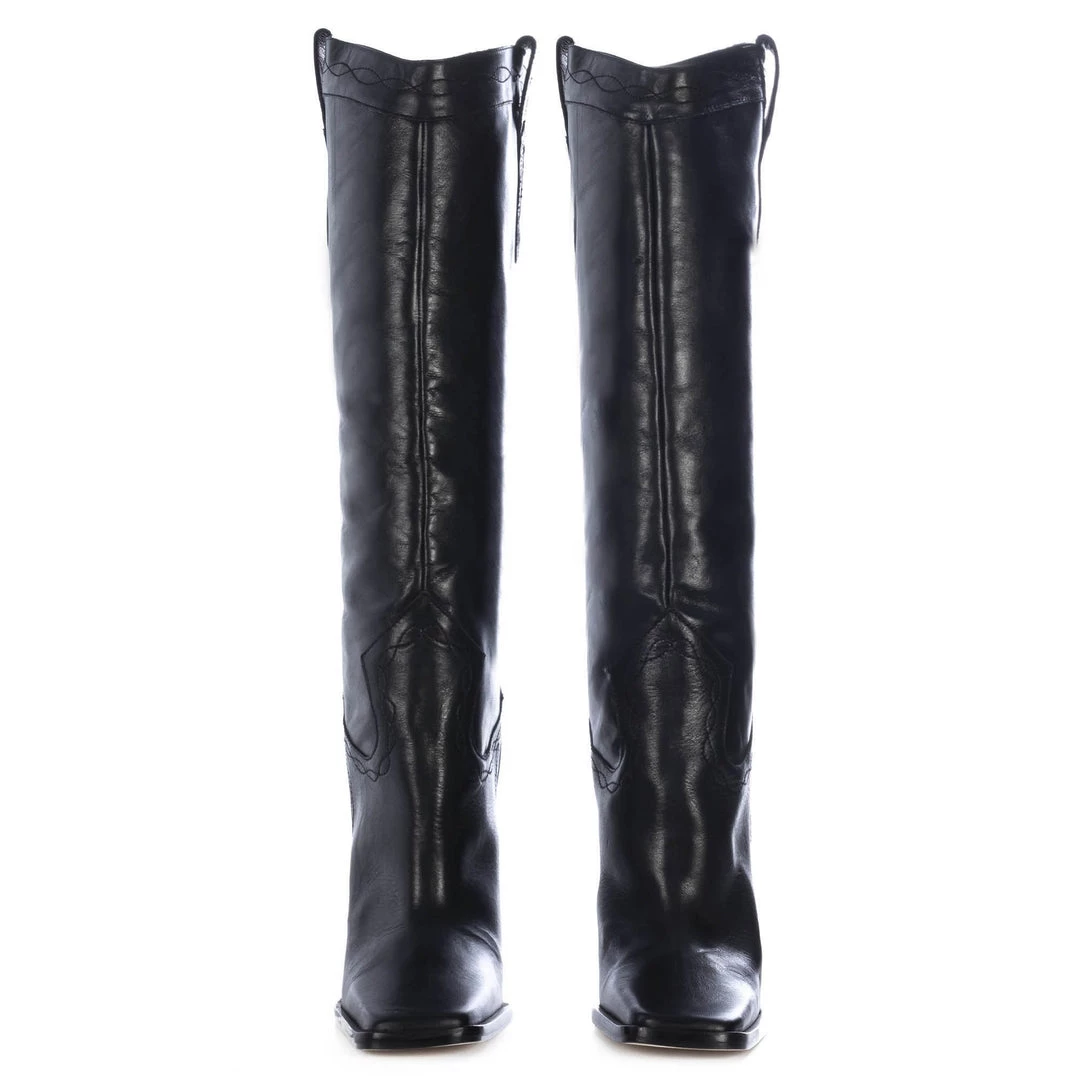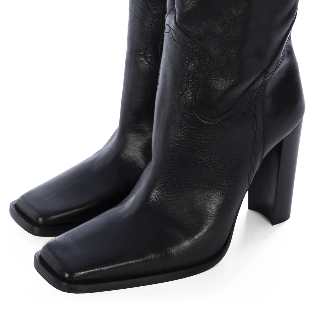 Toral X Danielle Guizio heeled black boots are made from Italian leather and are made in Spain.